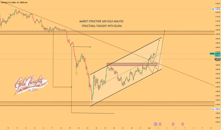 Selena | XAUUSD · 1H – Bullish Channel with Breakout Potential